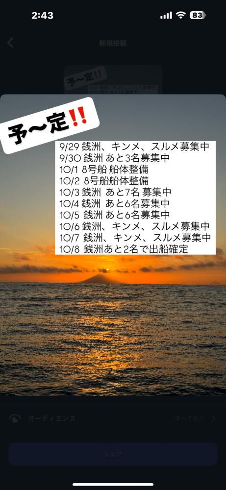 1日釣行の方につきましては、予約先着じゅんになりますので、宜しくお願いします。